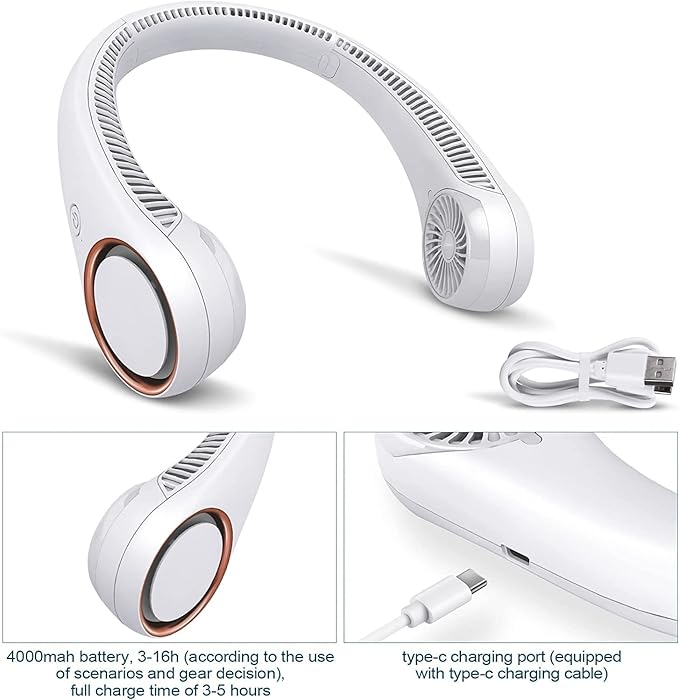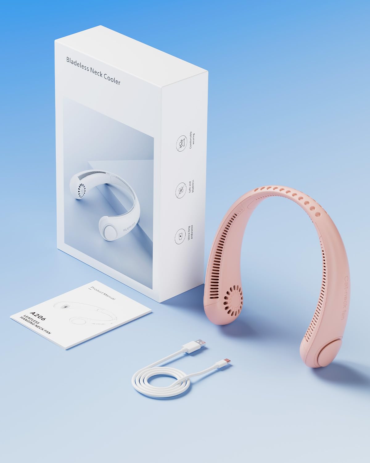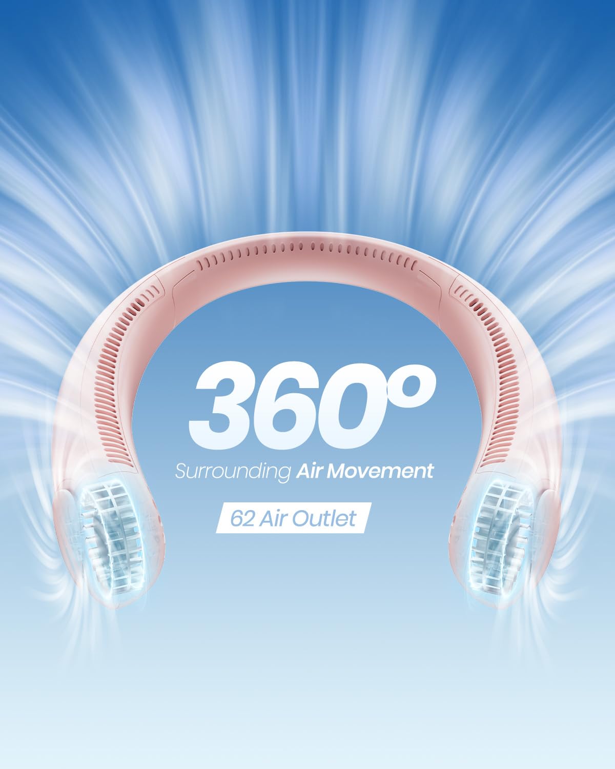 Stay Cool and Safe: Our newest portable hanging neck fan is designed fan, providing powerful and quick cooling in just 3 seconds. The bladeless neck fan is safe for children and the elderly, and won't get tangled in your hair. Stay cool and comfortable all day long.