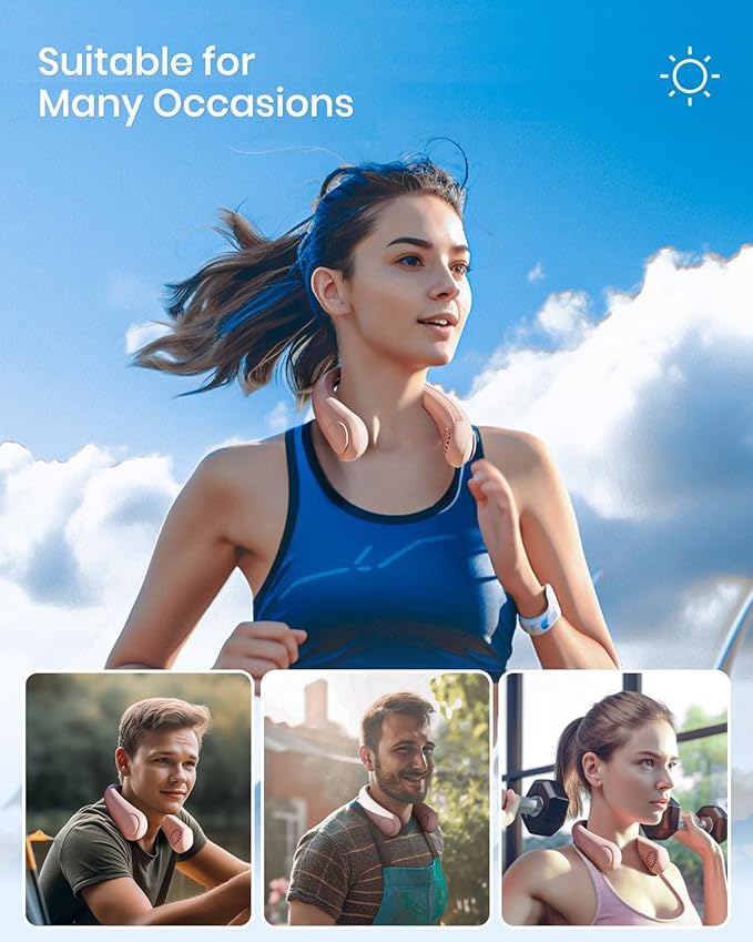Hands-Free and Stylish: Our neck fan is designed to look like a headphone, so you can free your hands and stay stylish. It's lightweight and portable, making it perfect for outdoor sports, indoor exercises, offices, gyms, traveling, and camping.
